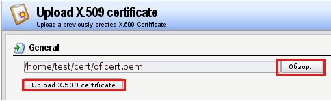 Укажите путь до сертификата dflcert.pem и нажмите Upload X.509 certificate.