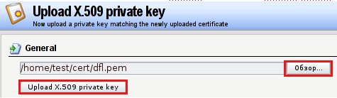 - Отметьте Upload a previously created X.509 Certificate, along with its private key