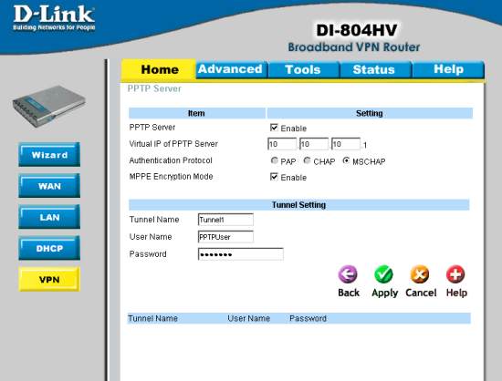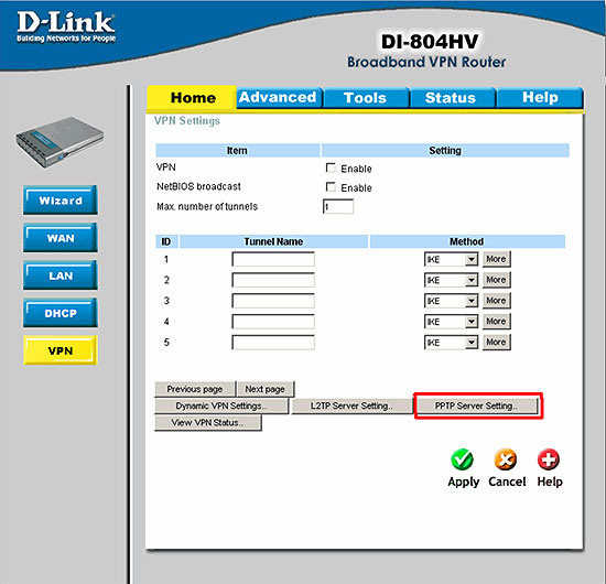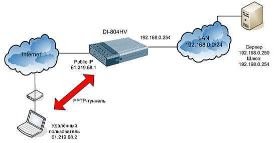 Настройка сервера PPTP на интернет-шлюзе DI-8XX (на примере DI-804HV)