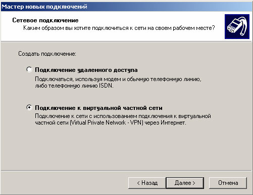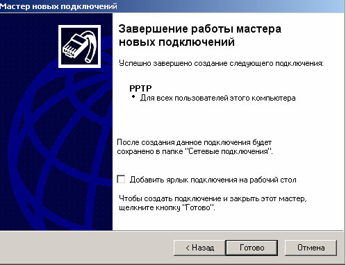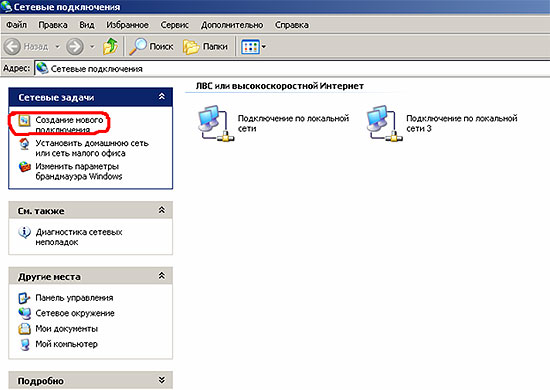 В свойствах Сетевого окружения выберите "Создание нового подключения" для того, чтобы создать исходящее подключение VPN-PPTP.
