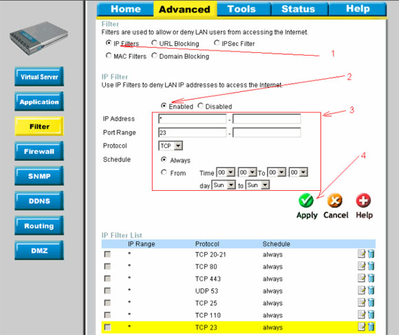 IP Filters - это дополнительная возможность Интернет- маршрутизаторов серии DI-XXX , предназначенная для ограничения доступа внутренним (то есть находящимися за маршрутизатором в локальной сети) компьютерам с определенным IP-адресом к ресурсам Интернет.