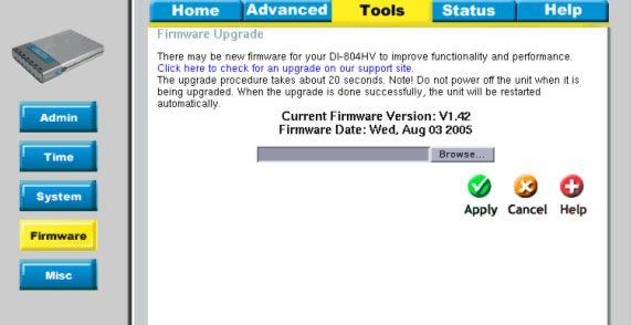 (на картинках показано обновление прошивки для DI-804HV в других устройствах все делается аналогично)