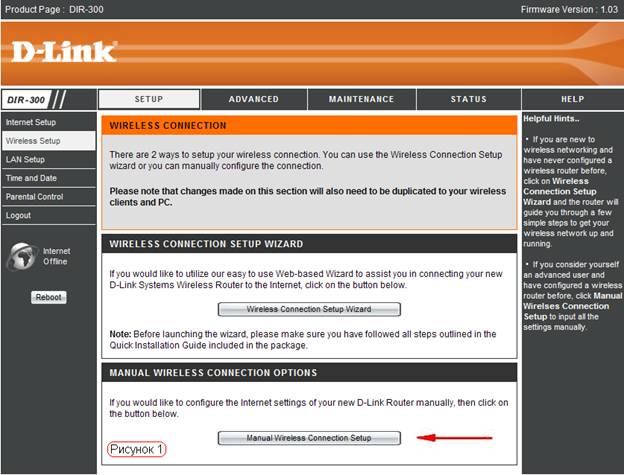 На вкладке Setup, выбираете вкладку Wireless Setup (рисунок 1)