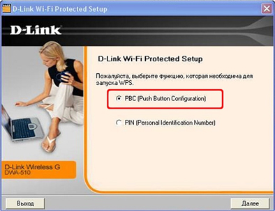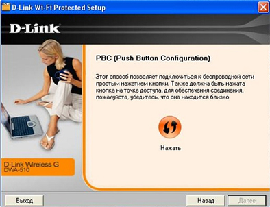 В появившемся окне выберите пункт Push button configuration и нажмите Далее: