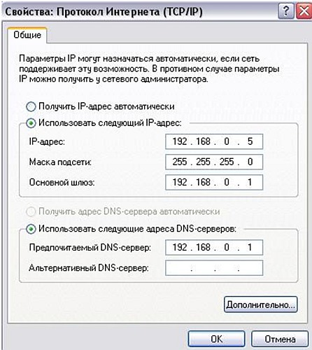 Настройте сетевой адаптер компьютера на автоматическое получение данных или следующим образом: