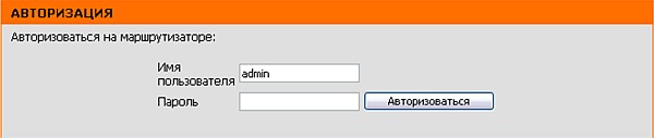 в поле Имя пользователя введите «admin», поле «пароль» оставьте пустым. Нажмите на кнопку «Авторизоваться».
