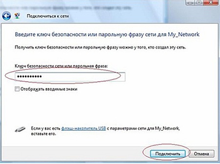 Введите ключ сети: