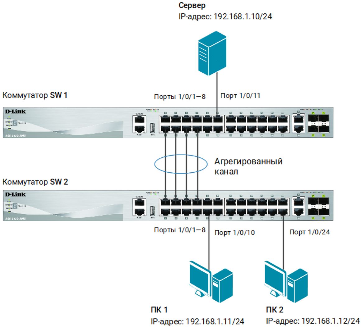 Программное обеспечение коммутаторов D-Link поддерживает два типа агрегирования каналов связи: статическое и динамическое, на основе стандарта IEEE 802.1ax (ранее IEEE 802.3ad).