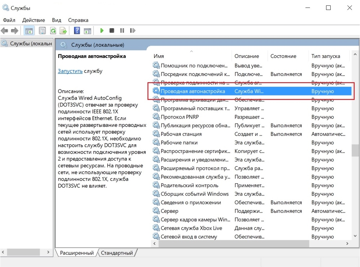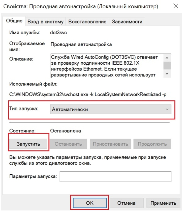 Рис. 3 Запуск службы Проводная автонастройка