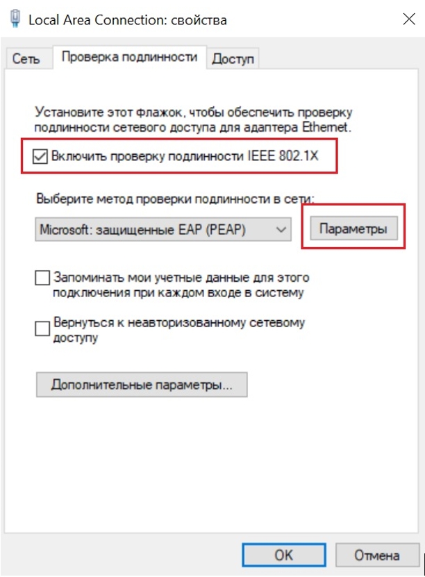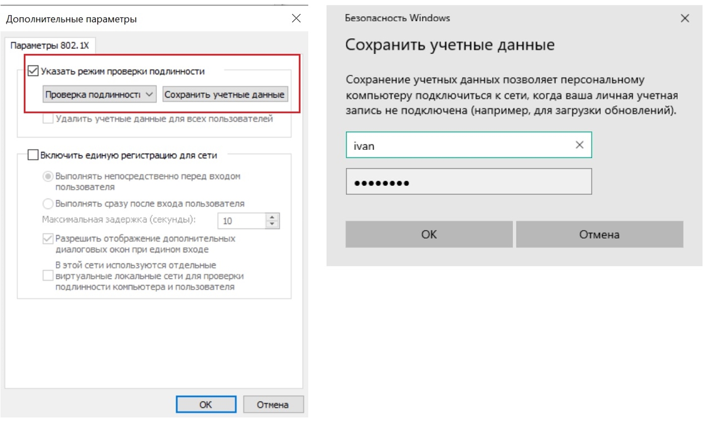 Настройка клиента 802.1Х на рабочей станции с ОС Windows 10