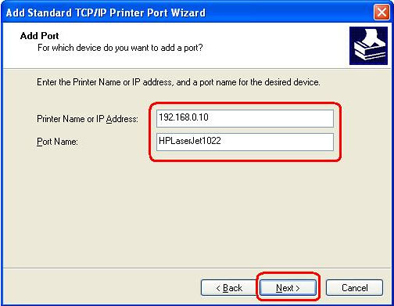 В настройках TCP/IP порта, в графе "Printer Name or IP Address" укажите IP-адрес принт-сервера. В графе "Port Name" должно быть ранее запомненное значение (пункт 9).