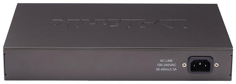 DES-1016D Неуправляемый 16-портовый коммутатор 10/100 с внутренним блоком питания. Поставляется со шнуром под используемый в России тип силовых розеток.