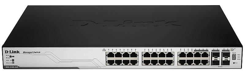 DGS-3100-24P Управляемый стекируемый коммутатор 2 уровня, 20 портов PoE 10/100/1000Base-T, 4 комбо-порта 1000Base-T/SFP