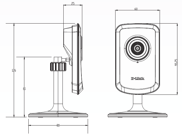 • Камера: 60 x 26 x 96 мм • Камера с подставкой: 80 x 80 x 126,6 мм |