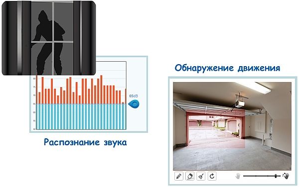 Камера поддерживает обнаружение движения в заданной области наблюдения и возможность установки порогового значения звукового фона, превышение которого будет фиксироваться. При срабатывании детектора движения или звука на электронную почту будут приходить уведомления со снапшотами или видеоклипами.
