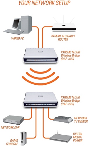 Поддержка технологии DUO была добавлена в часть устройств линейки Xtreme N. Благодаря этой технологии, DAP-1522 поддерживает передачу сигналов в двух диапазонах частот (2,4 ГГц или 5 ГГц) по беспроводному соединению. Это позволяет использовать для проверки электронной почты и работы в Интернет устройства стандарта 802.11g и 802.11n. При этом, диапазон 5 ГГц может использоваться для передачи фильмов и другого медиа-контента в формате HD. В результате HD-сигналы передаются в отдельном диапазоне частот, что позволяет избежать интерференции.