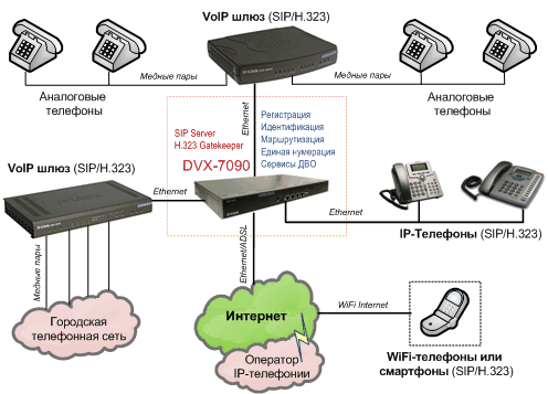 Голосовой маршрутизатор D-Link DVX-7090 является совместным проектом компаний D-Link и MERA Systems и может применяться в качестве альтернативы аналоговой офисной АТС в торговых центрах, многоэтажных домах, средних и крупных офисах, позволяя использовать существующую сетевую инфраструктуру, как для передачи данных, так и для организации телефонной сети. Его можно также использовать для организации небольшого операторского узла связи (поддерживается Radius-сервер) или телефонного выноса.